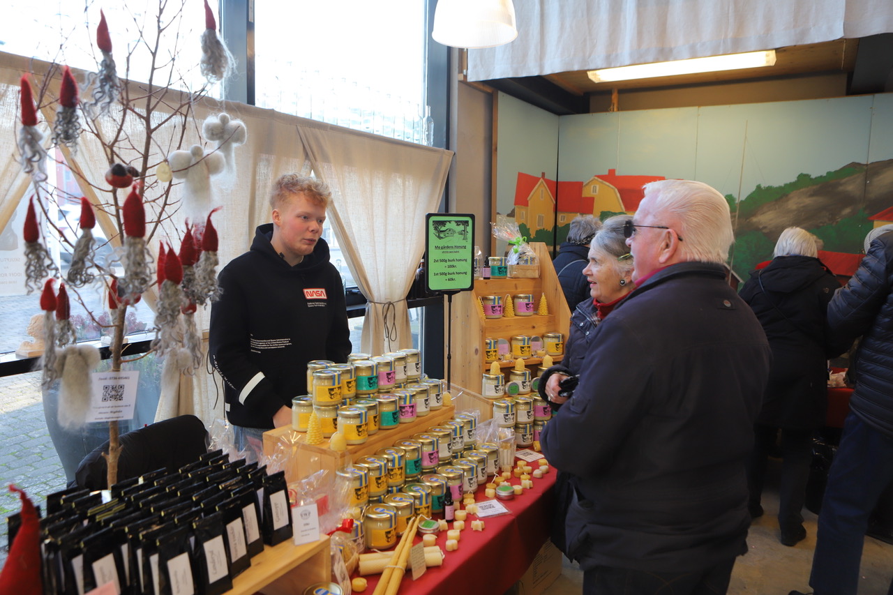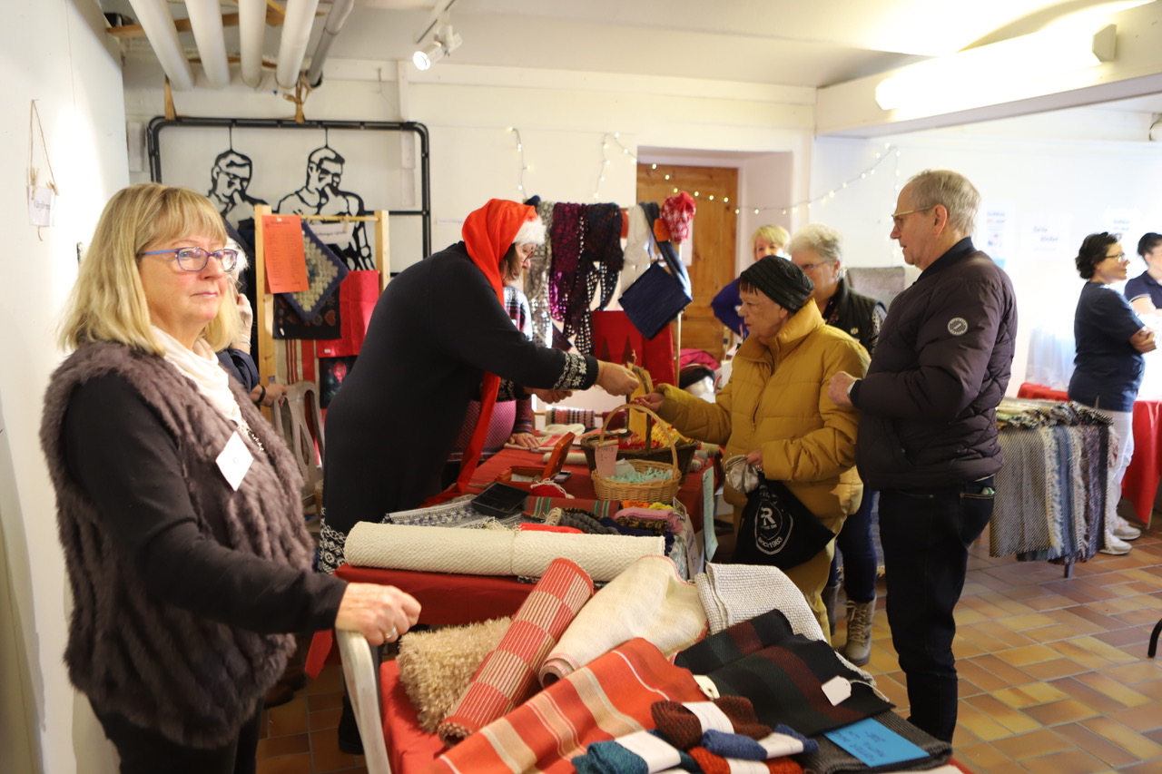 Marknadsbesökarna var många när traditionen med Julmarknad på Glasbruksmuseet kunde återupptas. Arrangören hade samlat utställare dels på museet, dels i den intilliggande hyttan.