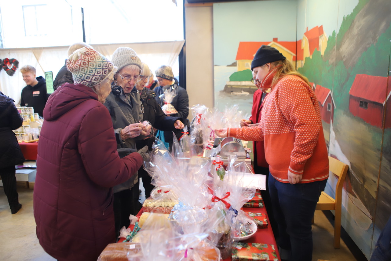 På entréplan bakades det tunnbröd och en trappa upp gräddades det våfflor som också hade en strykande åtgång. När klockan slagit tolv gjorde tomten sin entré.