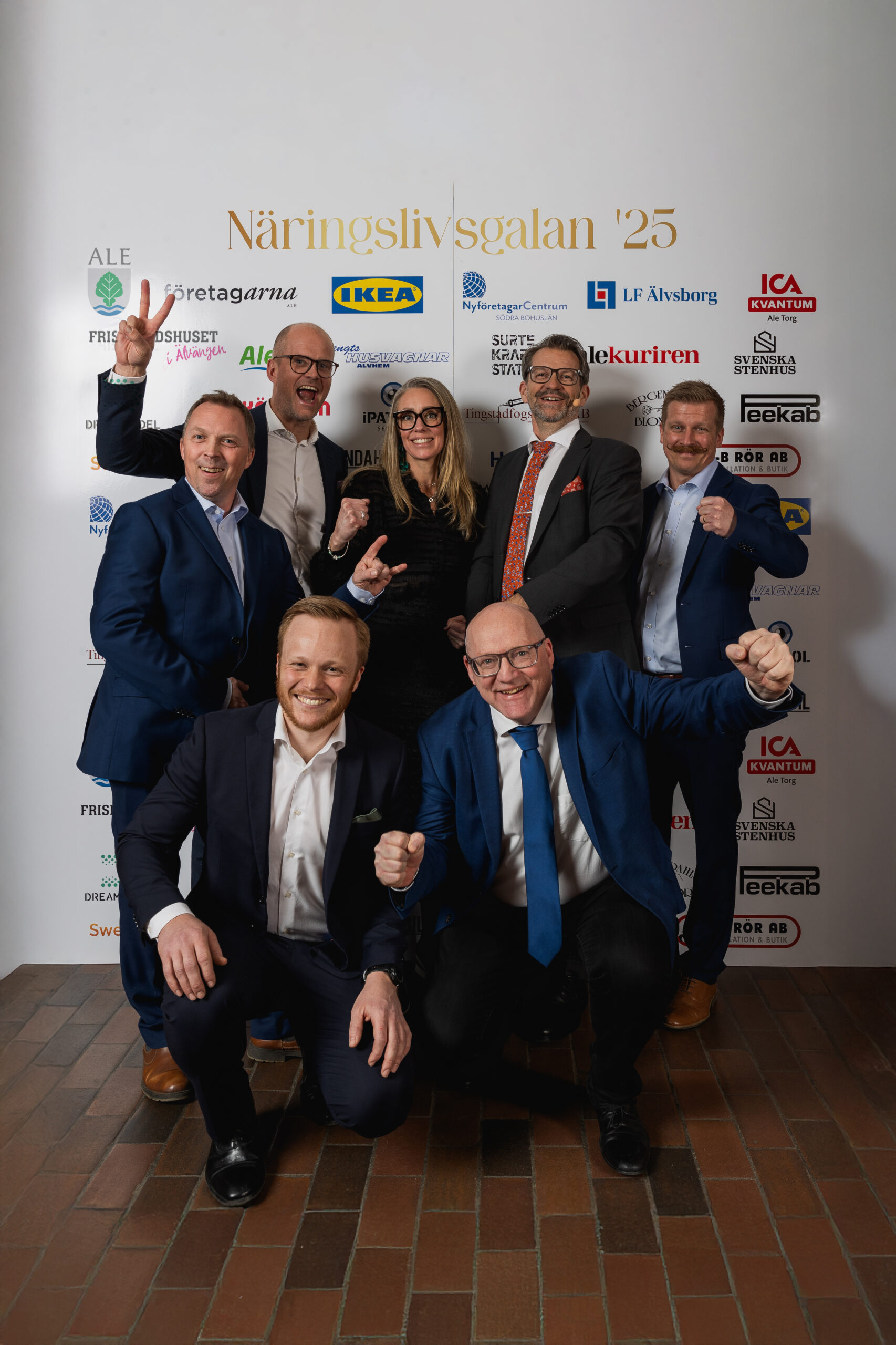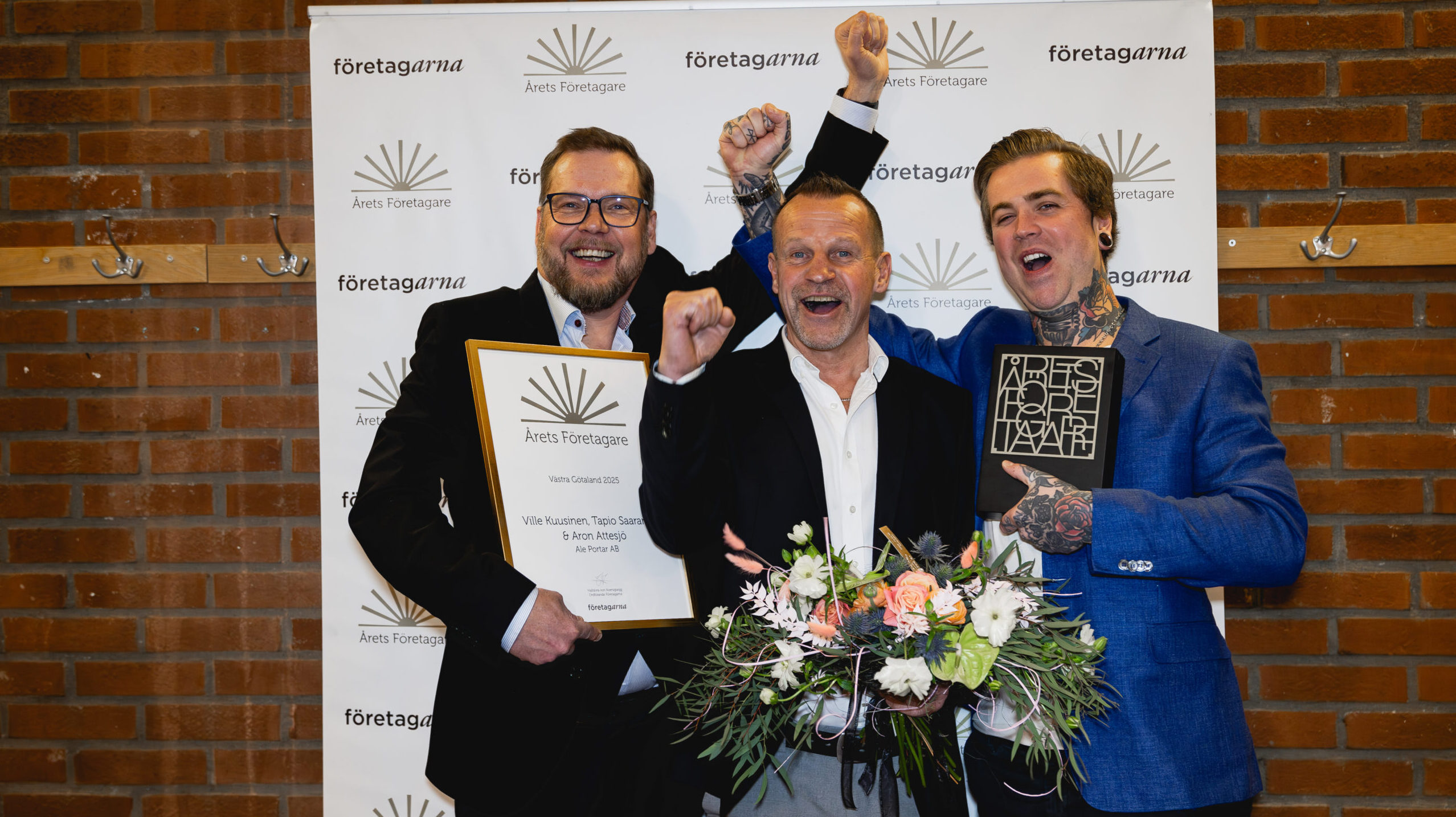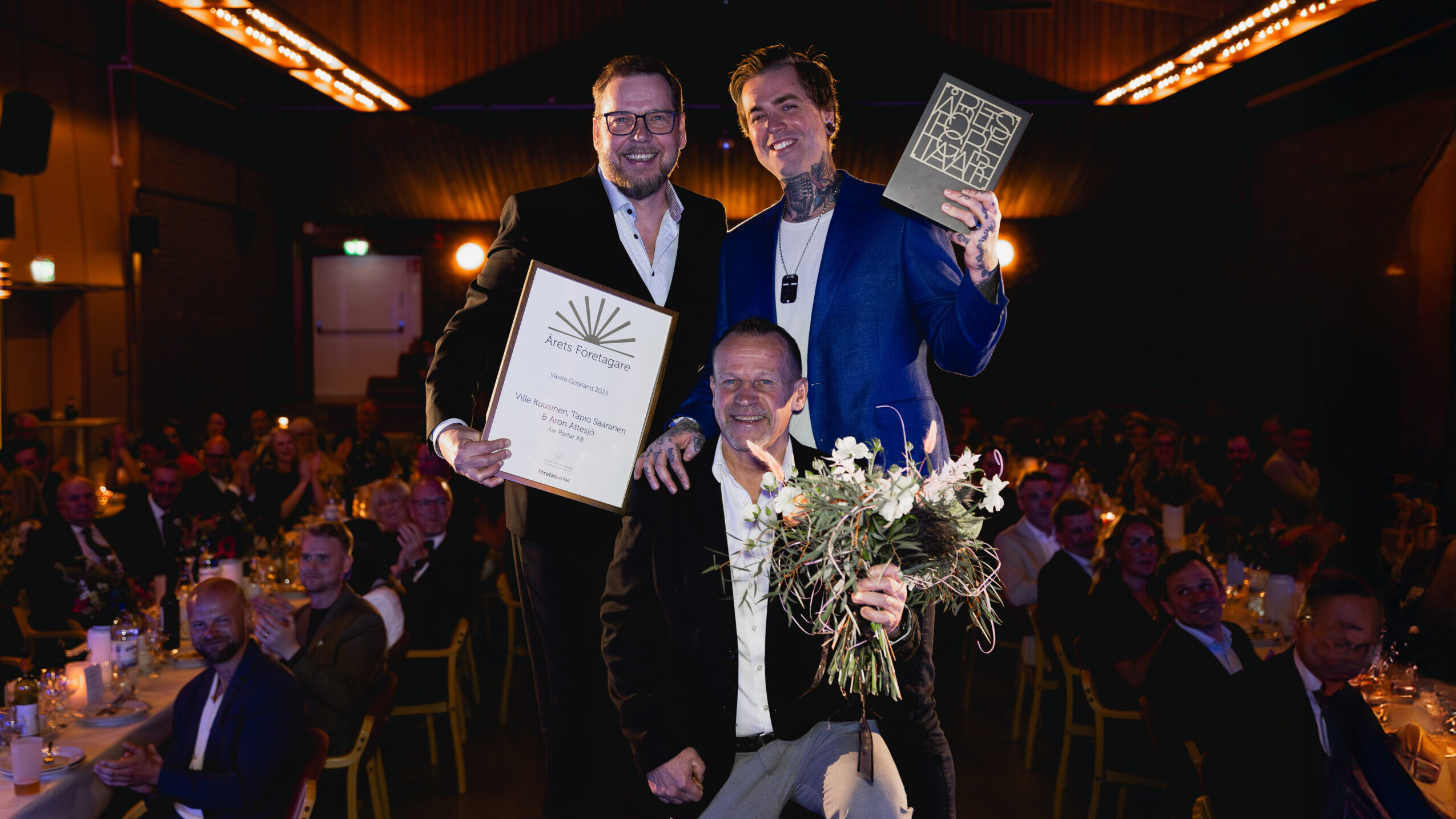 En nyhet för året var att kvällens mest prestigefyllda pris Årets Företagare 2025 delades ut först. De tre delägarna i Ale Portar AB; Ville Kuusinen, Tapio Saaranen och Aron Attesjö fick ta klivet upp på scen.