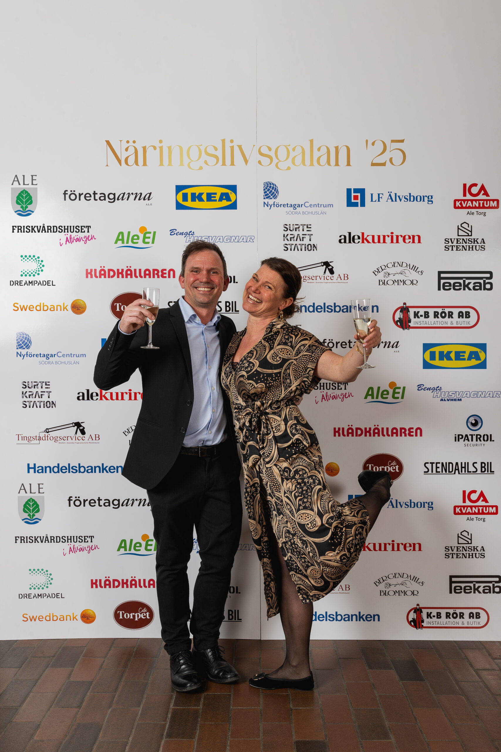 Ett drygt hundratal företagare, tjänstemän och politiker i Ale samlades i Medborgarhuset under fredagskvällen. Näringslivsgalan var tillbaka inomhus efter två år i Furulundsparken. Här väntade en trerätters galameny serverad av Café Torpet, underhållning av Ales egen magiker Benji Millo och coverbandet The Babes såg till att klackarna var i taket fram till midnatt. Mikael Erlandsson, regionchef för Företagarna i Västra Götaland, agerade professionell konferencier. Efter tre timmar på scen pustade han ut.