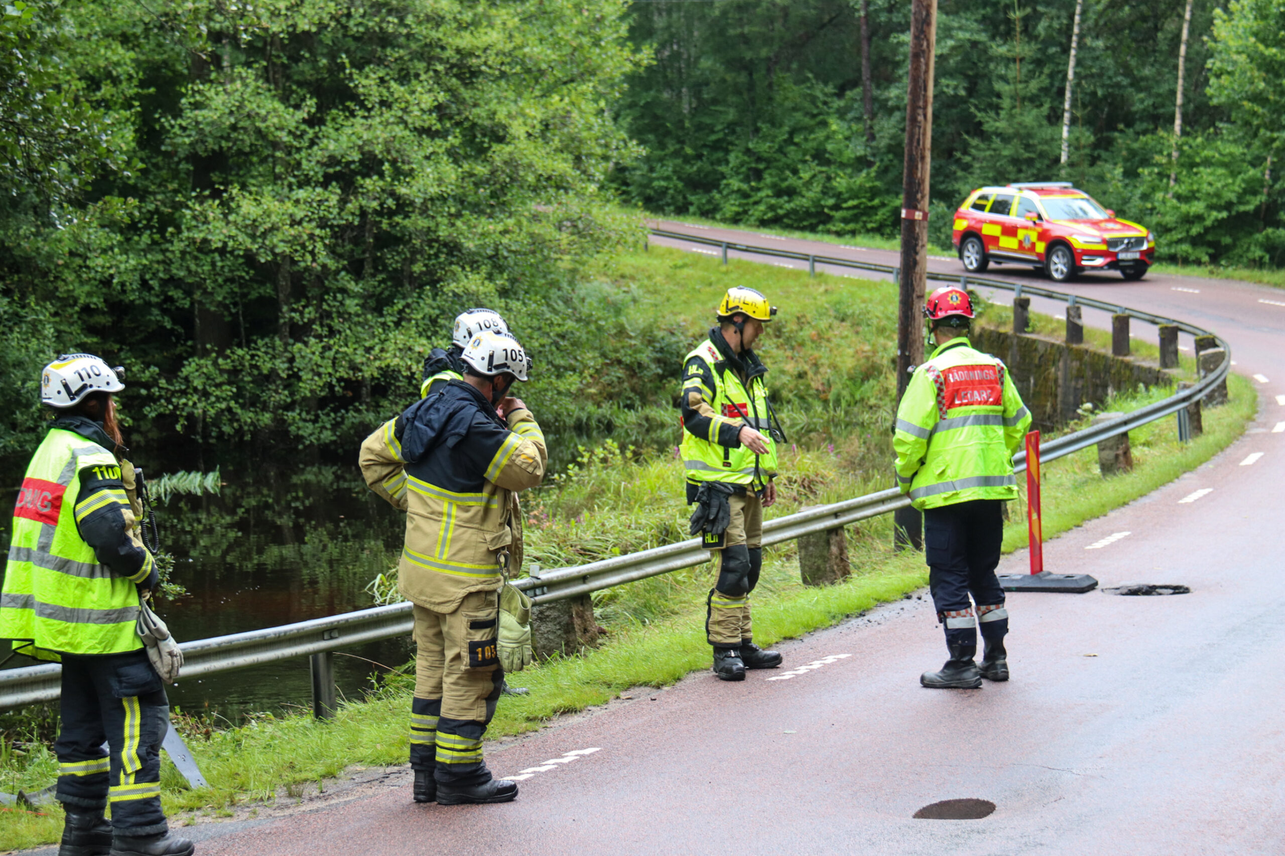 Räddningstjänst och personal från Trafikverket är på plats och undersöker området.